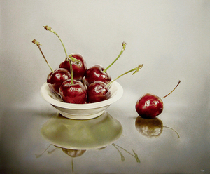 2008Stilleven met kersen in een schaaltje. Verkoop Galerie Lieve Hemel. (verkocht - sold)