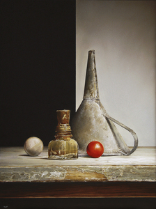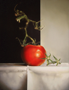 2009Stilleven met tomaat en twee kroontjes. Verkoop galerie LIeve Hemel. (verkocht - sold)